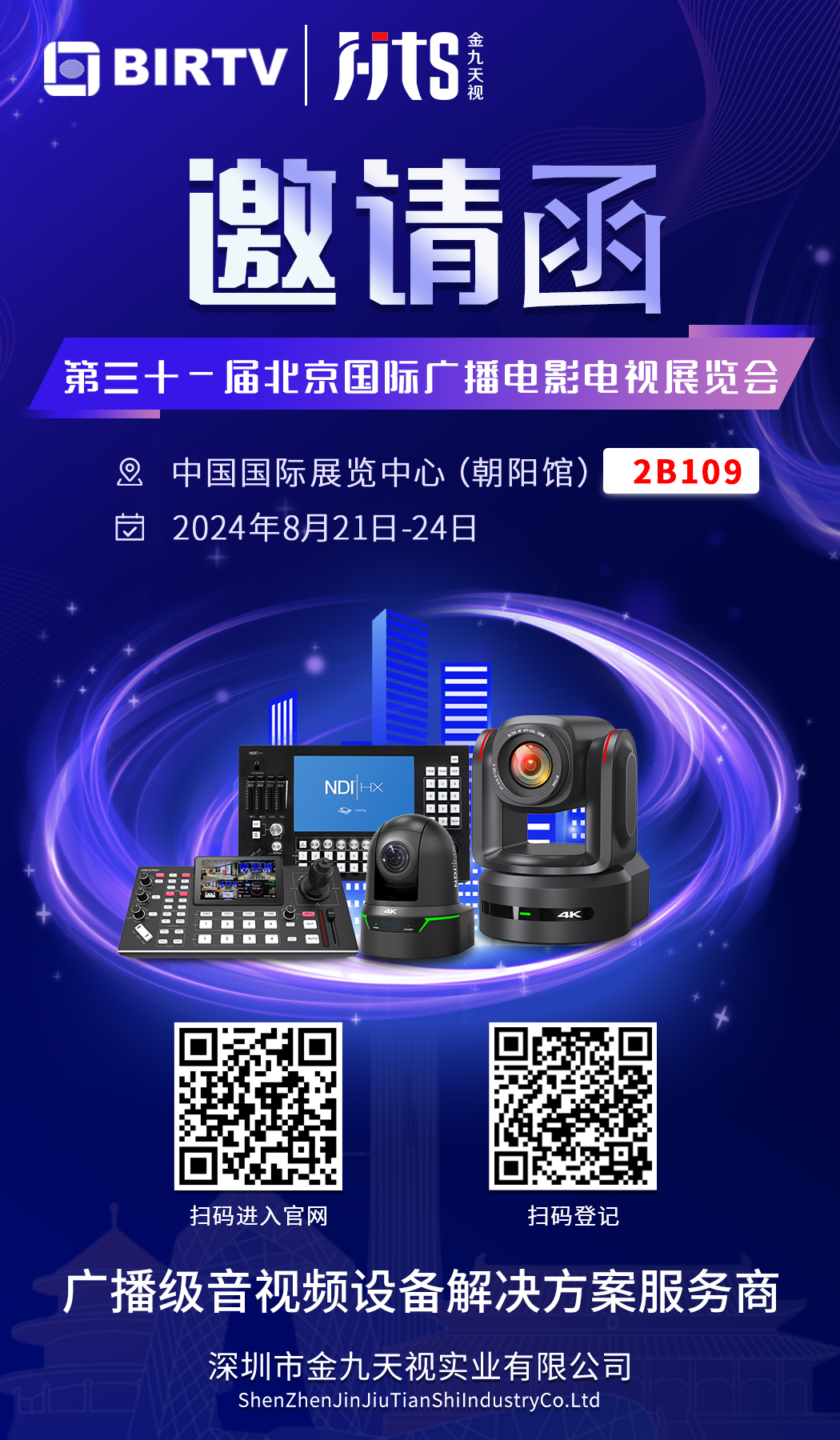 金九天視成立于2004年,深耕音視頻解決方案領域已逾二十年,是專業(yè)的音視頻方案提供商。2024年8月21日至24日,金九天視將攜最新產品和解決方案,在北京中國國際展覽中心(朝陽館)2B109展位,展示我們在視聽領域解決方案上的最新成果。金九天視誠邀全球合作伙伴、行業(yè)專家及用戶朋友蒞臨展位,一同體驗金九天視打造的視聽盛宴,共同開啟音視頻技術的新紀元!
