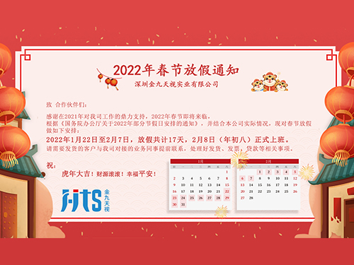 【深圳金九天視實業(yè)有限公司】2022年春節(jié)放假通知!